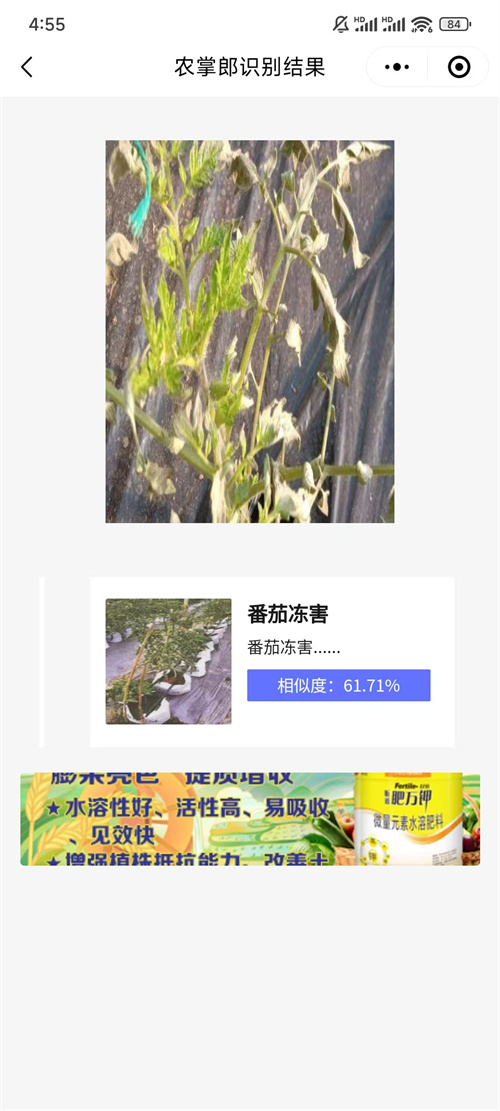 即使采取了预防措施,冻害仍有可能发生。一旦发生冻害,应立即采取措施,如及时浇水、追施恢复肥,促进农作物尽快恢复生长。同时,加强病虫害防治,防止因冻害导致的次生灾害。如果遇到不认识的病虫害怎么办呢?农作物病虫害识别的免费软件农掌郎,它是由北京掌郎网络科技有限公司研发的人工智能识别农作物病虫害的小程序,无需下载,使用方便。目前已涵盖柑橘、桂树、桃树、梨树、苹果、李子等多种果树作物,其中病害(含生理性病害与药害)、虫害、草害上万种,识别准确率高达90%,全国用户近10万。