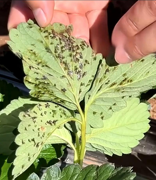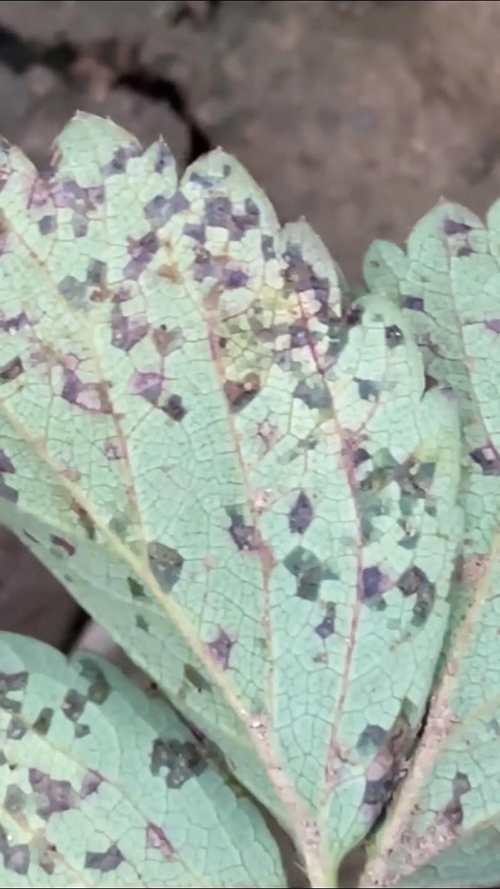 (3)媒介:雨水飞溅、灌溉水、昆虫(蚜虫、蓟马)、农事操作(打叶、摘匍匐茎)传播。