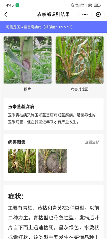 农民朋友看到这,希望本篇内容对玉米种植户有所帮助,免费的植物病虫害知识库农掌郎,有更多关于农作物病虫害的知识和防治方法,更可以手机一“扫”,农作物病虫害全知道的自动识别功能,如果你不认识农作物病虫害,那就赶快拿起农掌郎拍照吧。