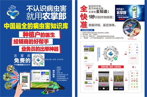 “农掌郎”,运用了5G、 AI 、互联网、大数据云计算等现代科技技术,建立了海量的病虫害数据及对比图库和防治方法库,目前可对蔬菜类、果树类、瓜果类、经作类、豆类等11大类农作物的数百种作物的病虫害和生理性病害进行准确的识别和诊治,更有专业的植保专家在线帮助农民朋友实时解决各种植保难题。