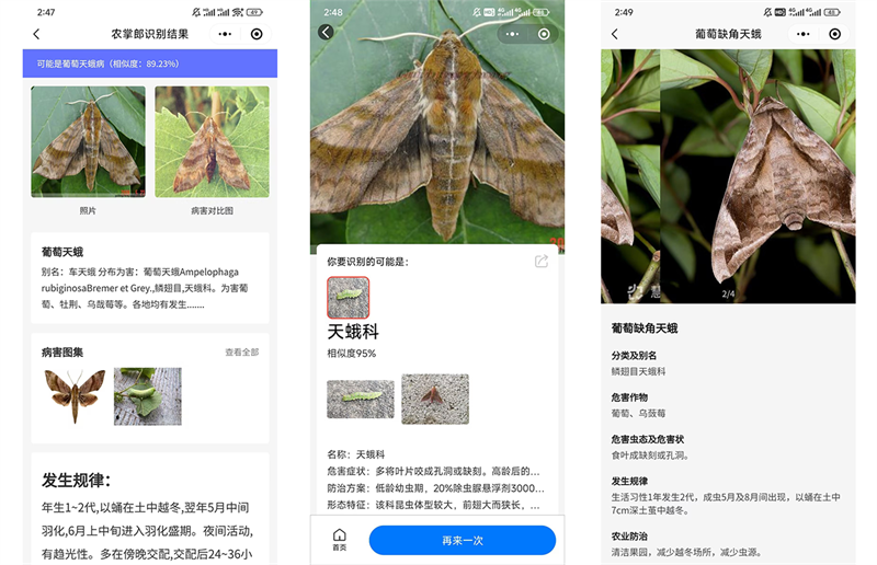 识农对于害虫的识别只能识别到科,无法确定到具体的种类,识别准确率为60%。